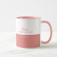 Ein modernes und ansprechendes Design für eine rosa-weiße Tasse.. um dieses elegante und personalisierte Element zu schaffen, müssen Sie nur Ihren eigenen Namen und Text zu den Vorlagen hinzufügen
