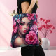Tote Tasche mit einer hispanischen oder Latina Frau mit hübschen rosa und blauen Blumen im Haar. Atemberaubende digitale Kunst.