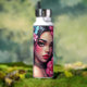 Tumbler mit einer hispanischen oder Latina Frau mit hübschen rosa und blauen Blumen im Haar. Atemberaubende digitale Kunst.