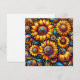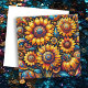 Schöne Sonnenblumenkarte, die auf der Rückseite leer ist. Hyper realistische ai Art zeigt gelbe und blaue Sonnenblumen auf abstrakte Weise.