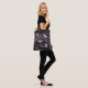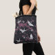 Eine schöne und dramatische Tottasche! Ein elegantes Muster aus schwarz-rosa Kirschblüten mit im Vordergrund hängenden Kranen und Sternen. Das wäre ein großartiges Geschenk für die Frau, die gerne schwarz trägt.