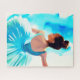 Puzzle in einem Aquarellbild einer schönen jungen Ballerina / Tänzerin in blau