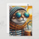 Eine bezaubernde Katze mit einem eiskalten Kaffee oder Duft, die einen Hut und einen Pullover trug, erschuf Kunst