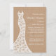 Ein romantisches Hochzeitskleid betont diese Brautduscheinladung auf einem illustrierten, mittelfarbigen Burlhintergrund. Diese Einladung wird auf dem Grundpapier gezeigt; ich empfehle jedoch das Gewicht und die Textur des Leinenpapiers