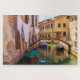 Schönes Foto-Puzzle mit einem wunderschönen landschaftlichen Blick auf einen Kanal mit Palästen, Boote und eine Brücke, Venedig, Italien.