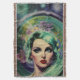 Karo aus diesem eleganten, wunderschönen Porträt einer Frau im Weltraum mit dem Universum als Kulisse und einem hübschen grünen Halo um ihren Kopf mit Lavendel-Blume mit einem Retro-Aquarell-Waschlook. Macht ein perfektes Geschenk!