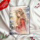 Ein Heilkranz aus Heiligen und Beeren auf ihrem Kopf, diese hübsche Weihnachtsmärchen in einem fließenden roten Gewand, steht im Schnee, mit ihr noch zu verzieren Weihnachtsbaum