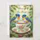 Schöne Nachmittagstee Party Buntes blaues Weiß Vögel Einladung HausArt