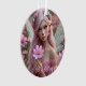 Eine wunderschöne rosa haarige Fee mit schimmernden Flügeln mit einem hübschen rosa Kleid und opalem Schmuck hält einen Single Kosmos, während stehend in einem Feld des Kosmos. Der Text kann leicht geändert oder gelöscht werden, wenn Sie das Bild ohne Text wünschen.