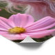 Eine wunderschöne rosa haarige Fee mit schimmernden Flügeln mit einem hübschen rosa Kleid und opalem Schmuck hält einen Single Kosmos, während stehend in einem Feld des Kosmos.