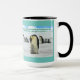 Schöne Penguin-Schrift-Tasse einer bunten, detailreichen schneebedeckten arktischen Szene eines väterlichen Kaisers Pinguin, die sich vorwärts biegt, um einen kleinen Kaiser Pinguin zu trösten, der zwischen seinen Füßen liegt, während hinter ihnen ein März des Kaisers Pinguine steht. Diese Szene begleitet den Bibelverse 1 Johannes 4:16: "Gott ist Liebe; und wer in der Liebe wohnt, wohnt in Gott, und Gott in ihm." Diese Tasse ist ein wunderbares Geschenk oder kann benutzt werden, um uns an das Wort Gottes zu erinnern.