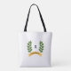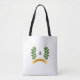 Schöne moderne grüne Bucht Blätter und goldenes Band Tote Bag. Text kann personalisiert sein.