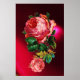 Elegantes, farbenfrohes Vintages Blumendesign, rosa Cabbage Rose im roten Bordeaux-Hintergrund.