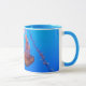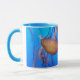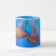 Diese Tasse zeigt eine Fotografie von zwei schönen Quallen mit langen Tentakeln, während sie durch hübsches blaues Ozeanwasser schwimmen. Diese Fotografie wurde von meinem Sohn, David Mann genommen.