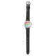 Eine personalisierte Uhr mit einem Aquarellhintergrund, der die Farben des Regenbogens zeigt.