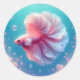 Tauchen Sie ein in die ruhige Schönheit der Unterwasserwelt mit unserem schönen rosafarbenen Bettfischaufkleber. Dieser Aufkleber mit einem lebendigen rosa Bettfisch, der elegant vor einem ruhigen, hellblauen Hintergrund schwimmt, ist ein perfektes Akzent für Bettfische und Besitzer.