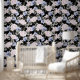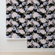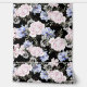 Die Einrichtung dieses Produktes ist ein wunderschönes Blumenmuster von Rose, Iris und Grün auf schwarzem Hintergrund - Farben: Rosa, Blau, Grün, Schwarz, Weiß