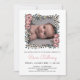 Blumenzeremonie mit einem Foto Ihres kleinen Mädchens in einem Blumenrahmen mit rosa und blassfarbenen Blume, Grün und Beeren. Rosa Namensgebung Einladung mit hübschen Blume und der Name Ihrer Tochter in Rosa. Girl-Benennung Einladung personalisiert mit einem Foto Ihrer Tochter.