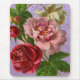 Dies ist eine schöne Vintage Rose-Abbildung mit einem Hintergrund von lila Spitzentextur.