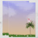 Der lila Himmel, die Palmen und das Foto eines Rosenlöffels sorgen für ein wunderschönes Geschirr.