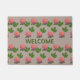 Schöne rosa Rosen auf beige Türmatte. Willkommenstext kann personalisiert sein.