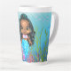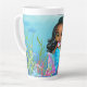 Schöne schwarze Meerjungfrau spielt im Meer Milchtasse