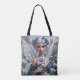 Eine wunderschöne blauhaarige Fee mit silbernen Flügeln, die ein hübsches blaues Kleid und Saphir-Schmuck tragen, hält einen Single aster, während stehend in einem Asteroidenfeld. Der Text kann leicht geändert oder gelöscht werden, wenn Sie das Bild ohne Text wünschen.