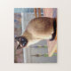 Schöne siamesische Katze mit dem Puzzle aus blauem Auge