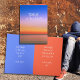 Farbiger Sonnenaufgang "Denken Sie an Sie" gefaltete Grußkarte. Erstellt, um einen Teenager inspirieren und zu ermutigen, aber arbeitet für jeden. Stellen Sie Text an drei Stellen ein, einschließlich der Schrift im Inneren. Helle Farbtöne von Orange bis Gelb und Lavendel bis Blau auf der Vorderseite, mit lustigem, gedrucktem weißem Text. Innen fügen Sie Ihre Nachricht und Unterschrift auf der rechten Seite, und eine Schrift oder Vers auf der links. Jede Seite passt zu den Farben der Vorderseite und hat weißen Text. Beispielbotschaft ist: "Denken Sie heute an Sie, und hoffen, Ihr Tag ist besonders schön, genau wie Sie". Die Schrift ist: "Danke an den Herrn, denn er ist gut!" Auch als Sofortdownload verfügbar, um immer wieder freizugeben.