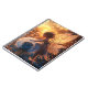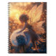 Dieses bezaubernde Bild zeigt eine wunderschöne, ätherische Sonnenfee mit leuchtenden Flügeln, die sanft einen großen Lüster berühren. Das warme, goldene Licht schafft eine zauberhafte und ruhige Atmosphäre.