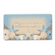 Ein schönes, individuelles Label mit einem exotischen Strandthema. Ein hübsches, sandfarbenes Hintergrundmuster in neutralen Cremetönen und Ozeanblau. Auf dem Dach befinden sich Kies, Muscheln, Seeigel, Seesterne und Perlen.