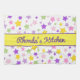 Ein wunderschönes und farbenfrohes Sternmuster, mit dem Sie die rosa, lila, grüne und gelbe Liebe auf weißem Hintergrund sehen. Mit einem gelben Rechteck in lila in der Mitte, anpassen Sie Ihren Namen in lila kursiv innen. Stars Art: AMBillustrations http://www.etsy.com/shop/AMBillustrations/