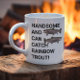 HANDSOME UND KANN FISCH FANGEN! Fantastisches Bass-Angelgeschenk für Ehemann, Freund oder Vater. Für den Typ, der gut aussieht und die Fähigkeit, Regenbogenforelle zu fangen. Die Tasse ist eine perfekte Ergänzung zu einem Tag am Wasser, in dem man Fisch fangen kann. Das Design weist den gleichen lachbaren Text auf der Vorder- und Rückseite auf.