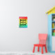 Schwarze Typografie-Design-Emblem mit Vintagen Buchstaben und Worten: "Du bist BRAVE und SCHÖN und SMART." Hintergrund ist ein farbenfrohes Regenbogenmuster.