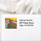 Schöne City Gebäude Niedlich Moderne Abstrakt. Passen Sie das Bild mit Ihren eigenen Monogramm-Initialen oder Namen an, machen Sie es größer oder kleiner. Phantastisches, wunderschönes europäisches Retro künstlerisch mädchenhafte Natur cooles Design für moderne Mode, mit bunten Häusern, einer Straße und einem Segelboot auf einem See bei Sonnenuntergang.