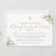 Diese schöne Aquarellfarbenkonfirmation lädt zu rustikalen grünen Blätter mit einem einfachen goldfarbenen Kreuz und elegantem Kalligrafiebeschreiben ein. Der Rücken ist ein hübsches Blattmuster. Personalisieren Sie den Namen und geben Sie wichtige Details für diesen schönen religiösen Anlass.