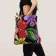 Ein atemberaubendes Blumenmotiv, das Ihren Einkauf angenehm macht. Farbenfrohe Orchideen-Blume in Korallen, rot, gelb und lila auf einem dramatischen schwarzen Hintergrund.