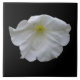 Diese phantastische Kachel zeichnet sich durch ein wunderschönes Foto aus einem Set aus weißer Petunia-Blume vor schwarzem Hintergrund aus und schafft so einen faszinierenden Kontrast.