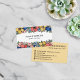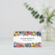 Farbenfrohe florale Visitenkarte mit Reihen von Blume in Korallen, Blau, Blau und Gelb, die Ihren Namen und Beruf in einem charmanten Serif-Schriftart geschrieben. Die lebendige Visitenkarte mit vielen Blume für jeden Beruf, wie Zuhause-Styling, Innendesign, Beauty und vieles mehr. Fügen Sie Ihre Kontaktinformationen in schwarzem Text gegen hellgelb mit niedlichen Visitenkarten-Icons für Adresse, Telefonnummer, Social Media und mehr hinzu.