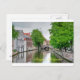 Schöne Aussicht auf die mittelalterlichen Gebäude und die Brücke in einem Kanal in Brügge, Belgien