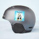 A cute funny hand drawn cartoon penguin with snowballs and snowflakes background. Personalized name stickers.