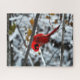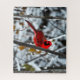 Das ist ein wunderschöner, hellroter Kardinal im Snow Jigsaw Puzzle für viele Stunden Familienspass.