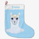 Schönes Lama auf hellblauem Hintergrund personalisierter Strumpf. Frohe Weihnachten!