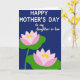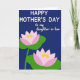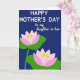 Dieses Design zeigt einen tief indigofarbenen Hintergrund, der ruhig und intim wirkt und die Bühne für eine süße Muttertagsbotschaft bereitet ❤️. Oben befindet sich die Hauptzeile „HAPPY MOTHER'S DAY“ zentriert in Weiß, in einem runden, leicht lesbaren Stil, der deutlich hervorsticht. Direkt darunter erscheint „to my daughter-in-law“ in kleinerer Schrift in einem weicheren Weiß, geschrieben in einer fließenden, kursiveähnlichen Schrift, die eine sanfte, liebevolle Note hinzufügt. Die untere Hälfte zeigt zwei stilisierte Seerosenblüten, die diagonal angeordnet sind, als würden sie sich in stiller Nähe zueinander neigen. Jede Blüte ruht auf breiten grünen Blättern, mit Blütenblättern, die von Rosa an den Rändern zu strahlendem Weiß in der Mitte hin verlaufen. In der Mitte jeder Blüte leuchten warme gelbe Details wie winzige, sonnenbeschienene Funken 🌼. Die Komposition bleibt einfach mit klaren Formen, und die beiden Blüten sitzen leicht auseinander, aber visuell miteinander verbunden vor dem reichen blauen Hintergrund. Die Blumen sind im unteren Bereich position
