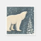 Ein lustiges künstlerisches Design mit einem zauberhaften, majestätischen Polar Bären, der in den arktischen Nachthimmel hinaufblickt, während große, flauschige weiße Schneeflocken um ihn herabfallen.