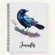 Spiralheft mit einer schönen Aquarellfarbe gezeichnet von einer Krähe. Dunkelblau und lebendige lila Farben unterstreichen die Schönheit dieses Vogels.