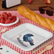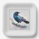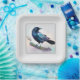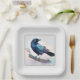 Papier Teller mit einer schönen Wasserfarbe zeichnend einer Krähe. Dunkelblau und lebendige lila Farben unterstreichen die Schönheit dieses Vogels.