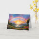 Ein wunderschöner Regenbogenbogen über einem See bei Sonnenuntergang, mit einer Wildblume Wiese im Vordergrund, auf dieser schönen Geburtstagskarte.