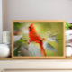 Poster mit dem Foto eines schönen roten Kardinals sitzend in den Zweigen eines Baumes.