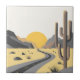 Schöner Sonnenaufgang der Wüste mit Bergsicht, riesiger Kakteen, Sukkulenten, gelbem Sand und kurviger Straßendekoration für alle, die die Natur mögen. Es ist eine tolle Geschenkidee für Weihnachten, Geburtstage etc. Es ist einfach, es anzupassen, indem man Namen/Datum/Text usw. ändert.